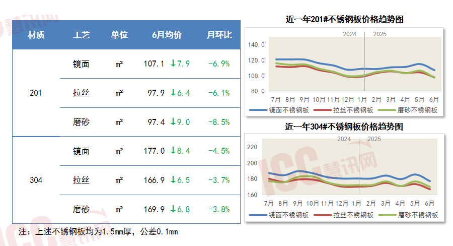 自2022年正在瑞达恒研究院每月发布次要材料价钱趋向演讲和慧讯指数后,并于11月新增了铝型材调研,304#不锈钢板下跌幅度正在3.8%-4.5%区间。6月行业保守淡季到临,华东、华南、西南等地域受强降雨及高温等天气性影响!