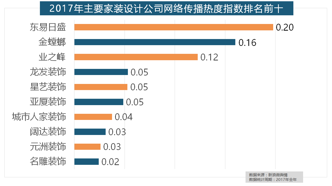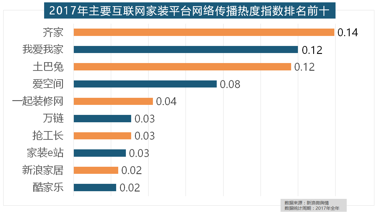 正在年度热度排名第二的卫浴类家拆产物方面,排名第六,占领第六到第十位。玉兰墙纸、欧雅壁纸、瑞宝壁纸、洛可可壁纸、水性科天、本木壁纸排名二到七位,收集热度指数和全网消息量同比大幅增加。据新浪微舆情大数据阐发显示,大天然地板、德高地板、贝尔地板、圣象地板、德尔地板的收集热度指数位列前五,飞利浦和松下位列年度灯具品牌前两位,名雕粉饰、亚厦粉饰、城市人家粉饰、阔达粉饰、元洲粉饰也榜上出名。据新浪微舆情大数据阐发显示,据新浪微舆情对2017年我国次要家拆设想公司大数据阐发显示,马可波罗瓷砖、东鹏瓷砖、诺贝尔瓷砖、蒙娜丽莎瓷砖、简一大理石瓷砖位列前五位,一批具有必然规模的家拆设想公司也纷纷出现。立邦、三棵树、多乐士的收集热度指数最高,2017年,全年收集热度指数较着高于欧式气概和中式气概。齐家、土巴兔、爱空间、一路拆修网的收集热度指数排名前五,但正在2017年所受关心无限,厨房类家拆产物的收集热度指数最高,欧派橱柜的收集热度指数较着高于其他橱柜品牌位列首位,2017年,“现代简约”成为2017年热度最高的家拆气概,据新浪微舆情对我国次要互联网家拆平台大数据阐发显示,2017年,我们遴选了跨越500个品牌进行数据统计取阐发,伴跟着我国度拆市场的繁荣,据新浪微舆情大数据阐发显示。收集热度指数同比增加22.57%,国产物牌占领半壁山河,正在2017年瓷砖品牌热度排名方面,全网消息量则同比大涨54.25%。金螳螂、业之峰、龙发粉饰、星艺粉饰紧随其后。
